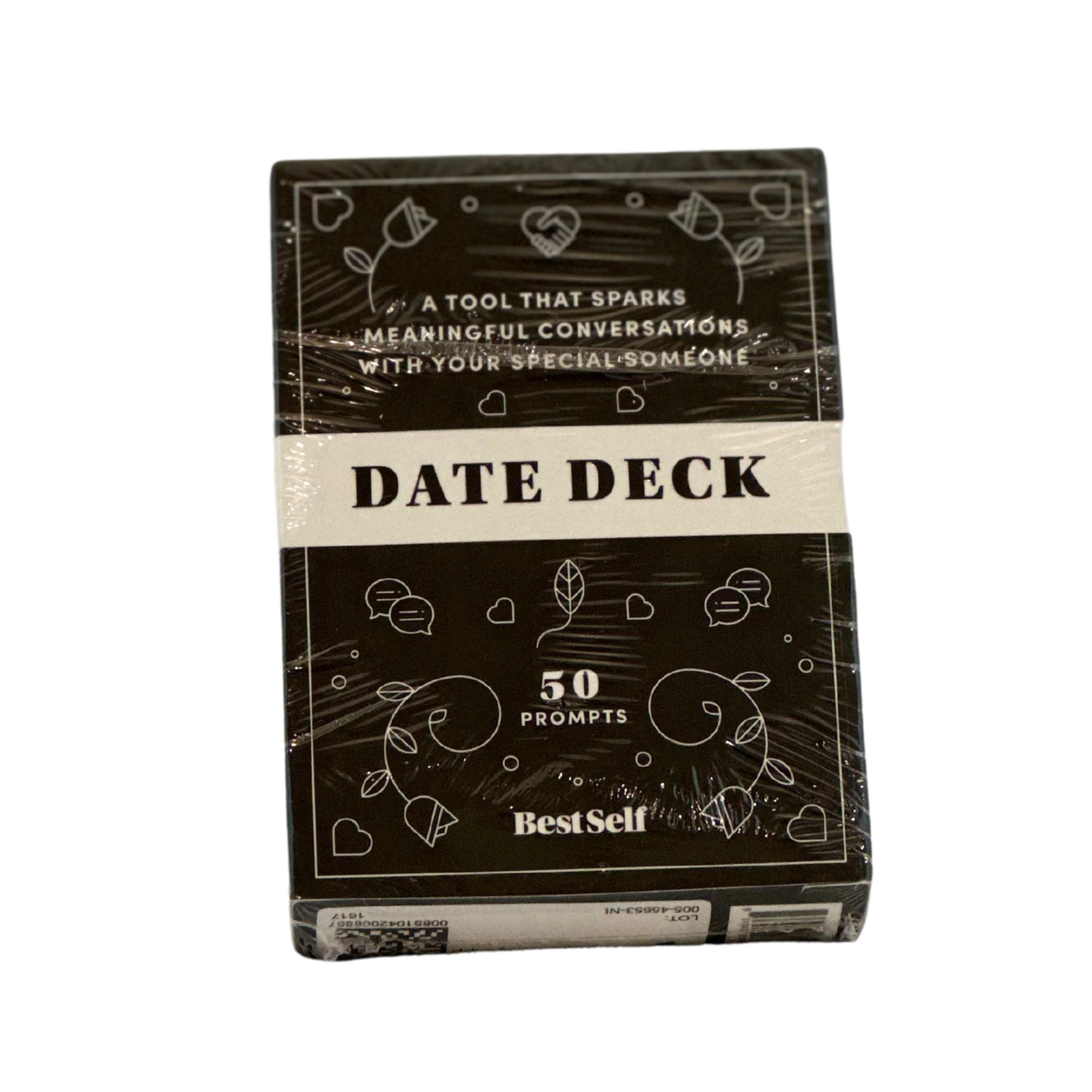 Three Back Porch Evenings Dreaming Date Night box guide cards on a wooden stand.